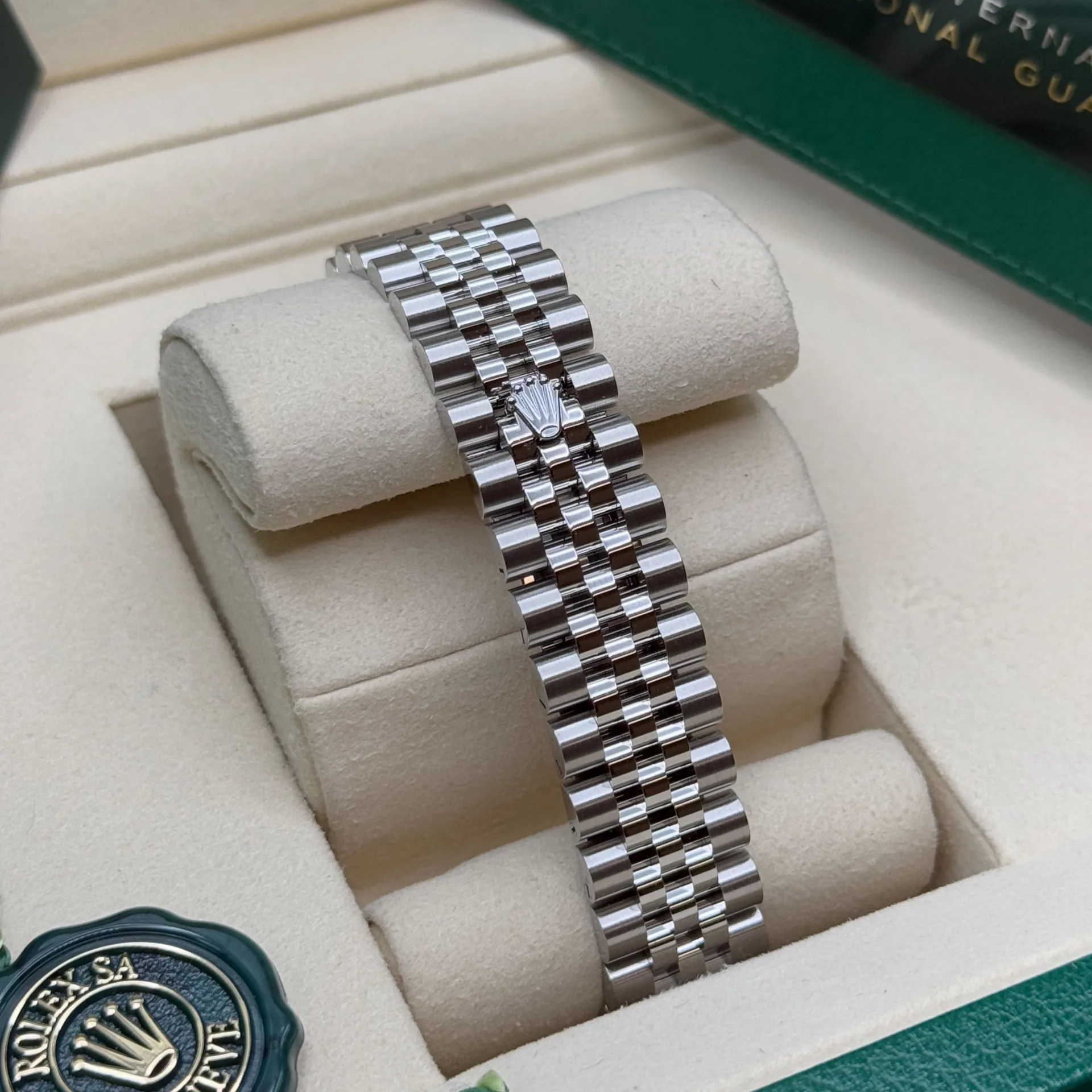 | Band Name | Oyster, three-piece solid links / Jubilee, five-piece links |