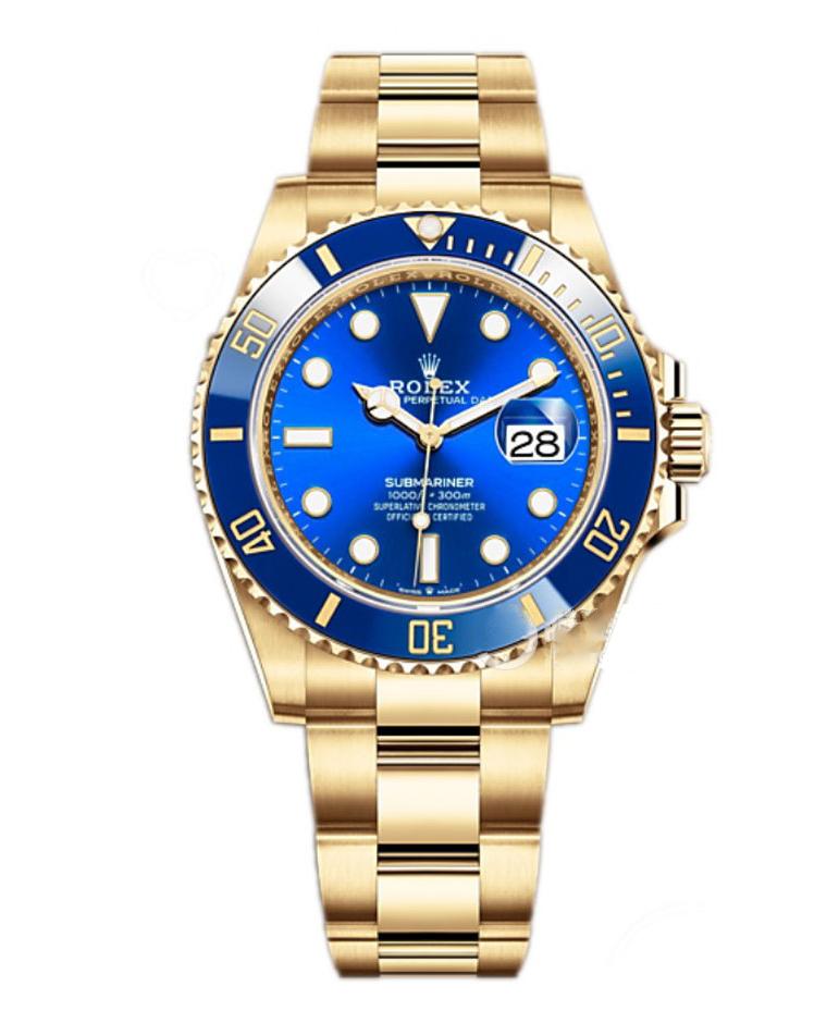 Oyster Perpetual Submariner Calendar watch in gold and Oystersteel models, with a royal blue dial and extra-large luminous hour markers.