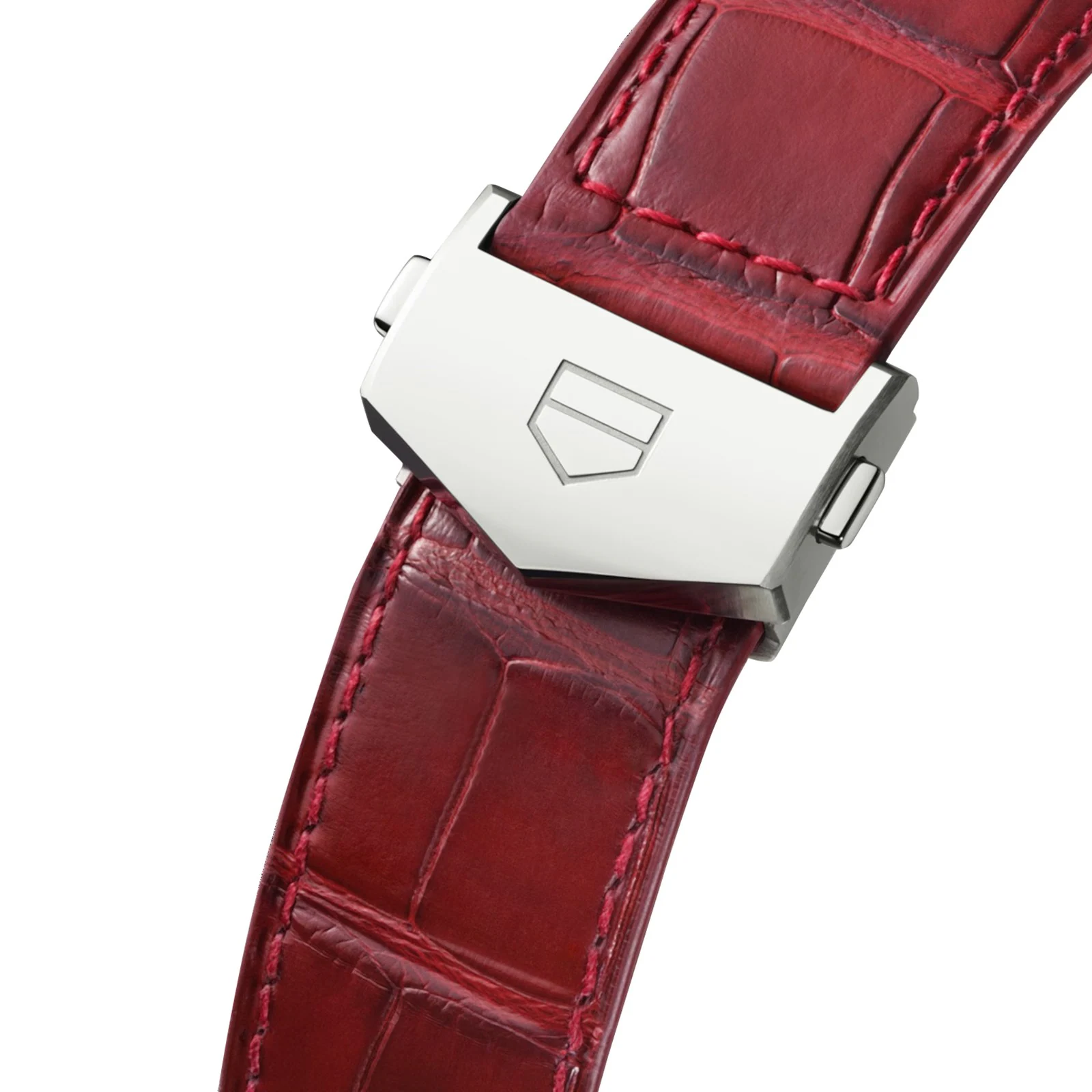 Presented in a 42mm steel case paired with a black calfskin leather strap, this model is characterised by its unparalleled charisma and prestigious red colour palette.