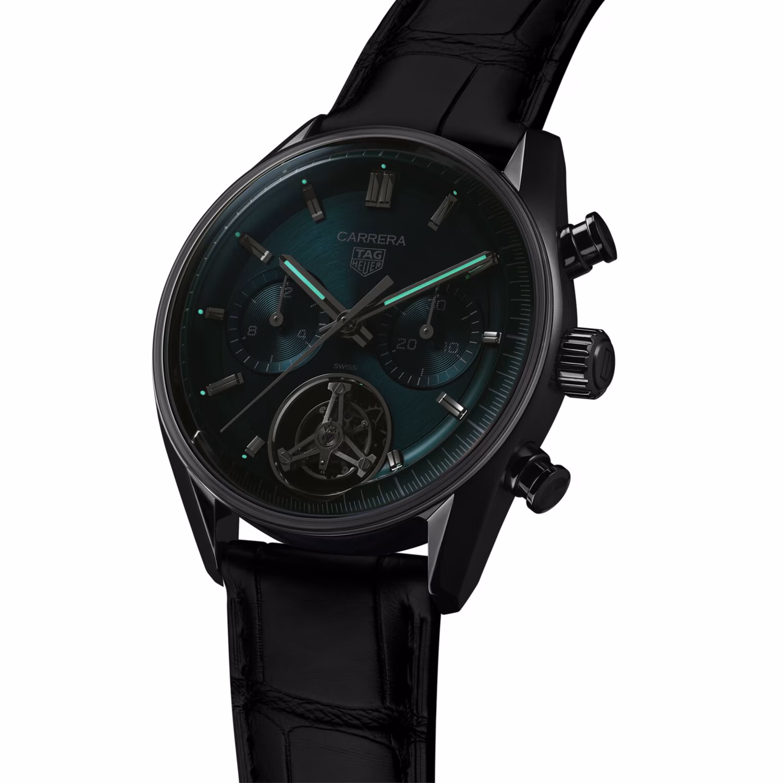 This Carrera Chronograph Tourbillon model makes a strong impression, with distinctive looks and proud reliability. The bold lines of the steel case reflect strength of character, while the distinctive Calibre TH20-09 automatic movement delivers endless functionality.