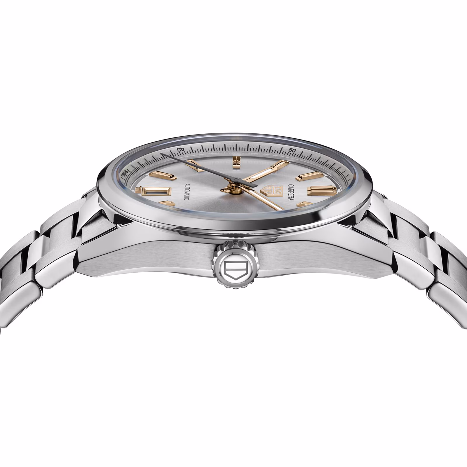 This Carrera Date model finds the perfect balance between elegance, comfort, and endurance, with a robust steel case elevated with prestigious details such as a fading, light-to-dark gradient ring along the flange.