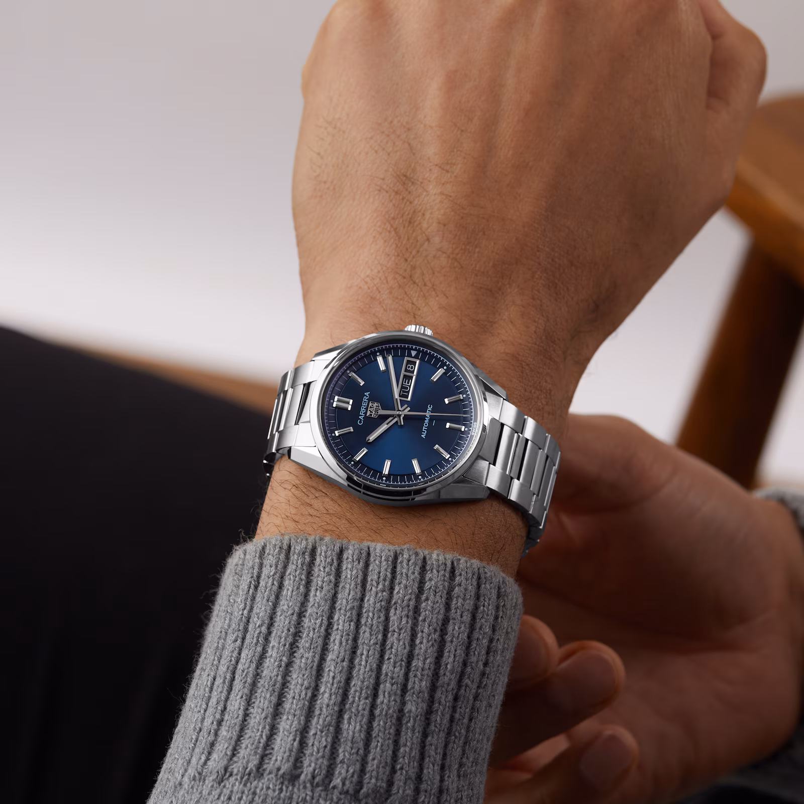 Discover the TAG Heuer Carrera Day-Date in signature blue. Featuring a sunray-brushed dial, rhodium-plated details, and powered by the TH31-02 movement with an 80-hour power reserve, this 41mm timepiece offers a sophisticated bracelet and sleek design, blending elegance with practical functionality. Engraved on the caseback, the Victory Wreath symbol pays homage to the TAG Heuer Carrera collection’s spirit of success.