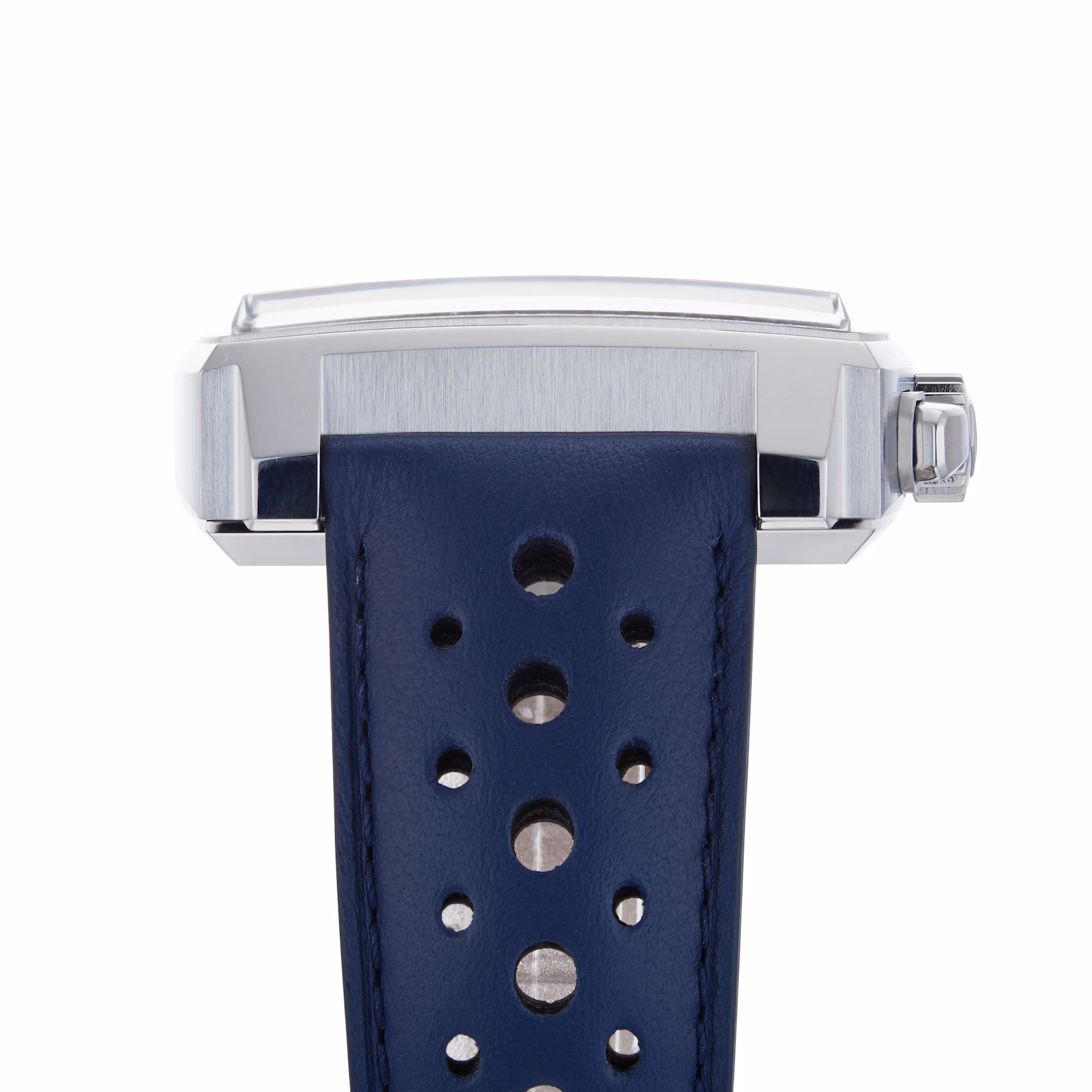 Paying tribute to two icons, this statement, special edition timepiece is presented in an elegant 39mm steel case, paired with perforated blue leather strap.