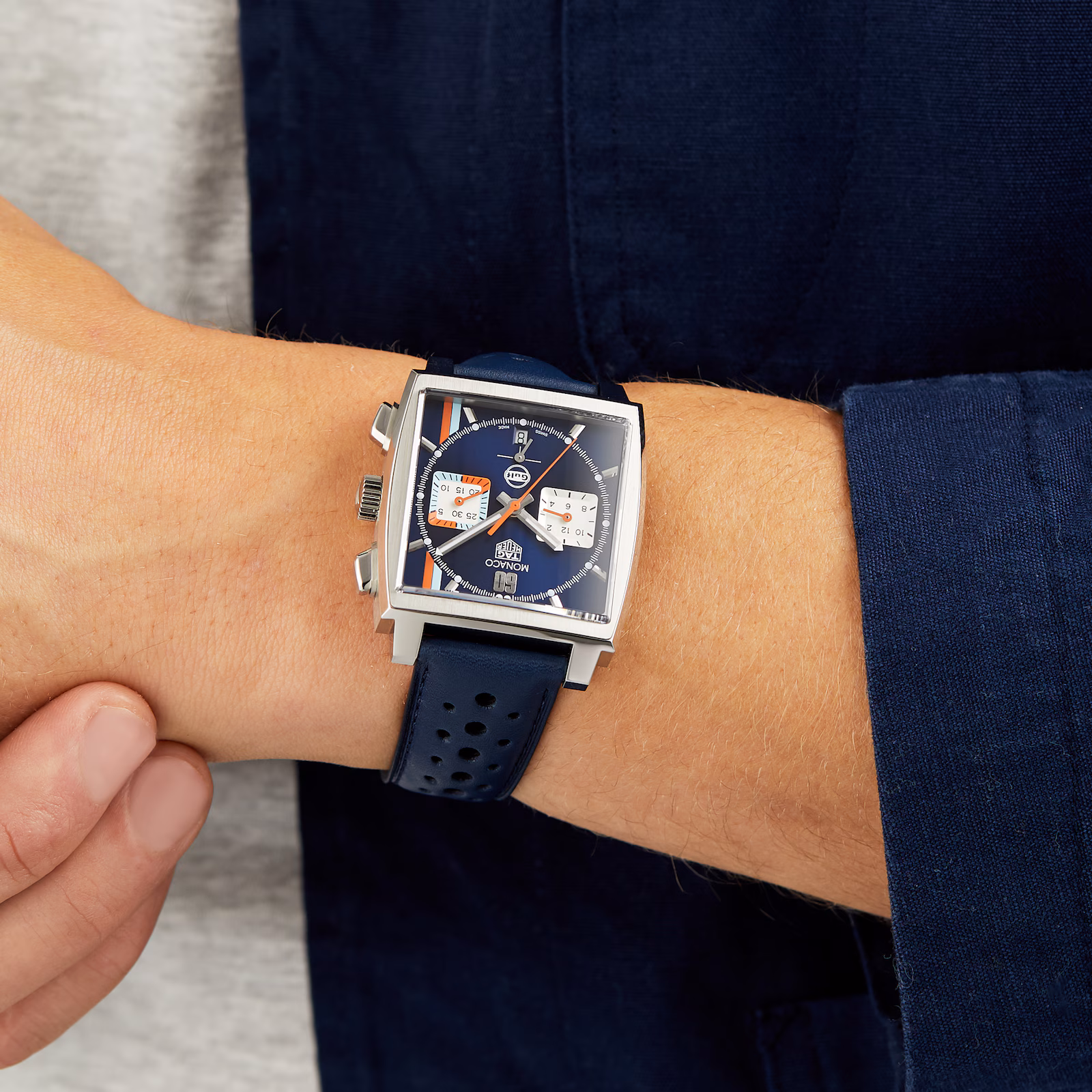 A timeless emblem of rebellious style, the Monaco collection is characterised by a unique, square case represents a move away from traditional watch design.
